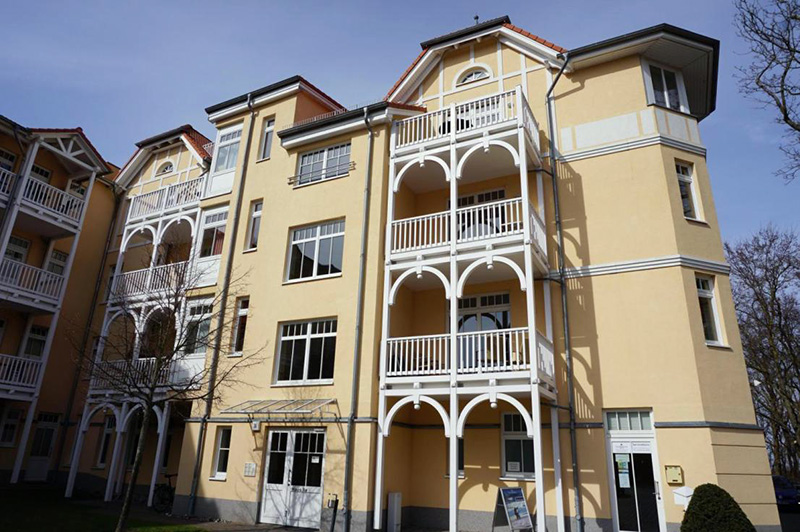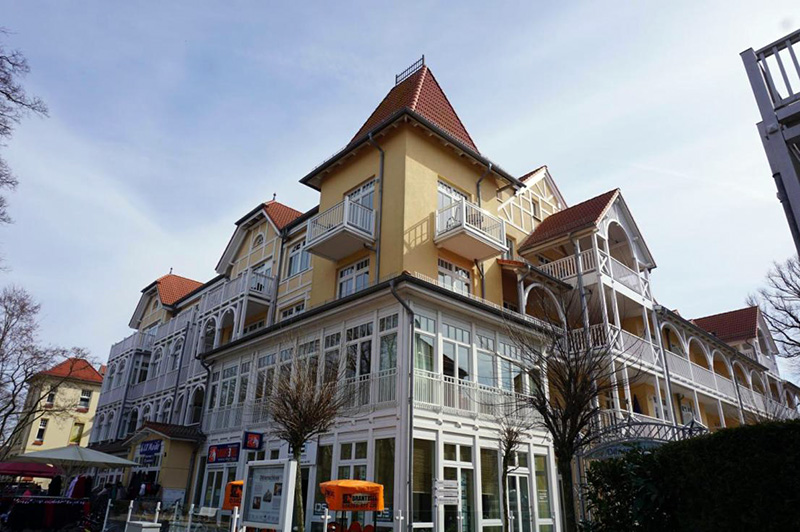In 'erster Reihe' zwischen Stadtwald und Ostsee befinden sich vier eindrucksvolle Apartmenthäuser, die zusammen die Apartmentanlage Dünenschloß bilden. Hier verbringen Sie sicherlich auf eine der exklusivsten Art und Weise Ihren Urlaub. Zu den Annehmlichkeiten der Anlage gehören ein Beauty- und Wellnessbereich mit Hallenbad, Sauna, Sanarium u. Ruheraum, ein Fitnessbereich mit Kardiogeräten sowie ein Wintergarten.
