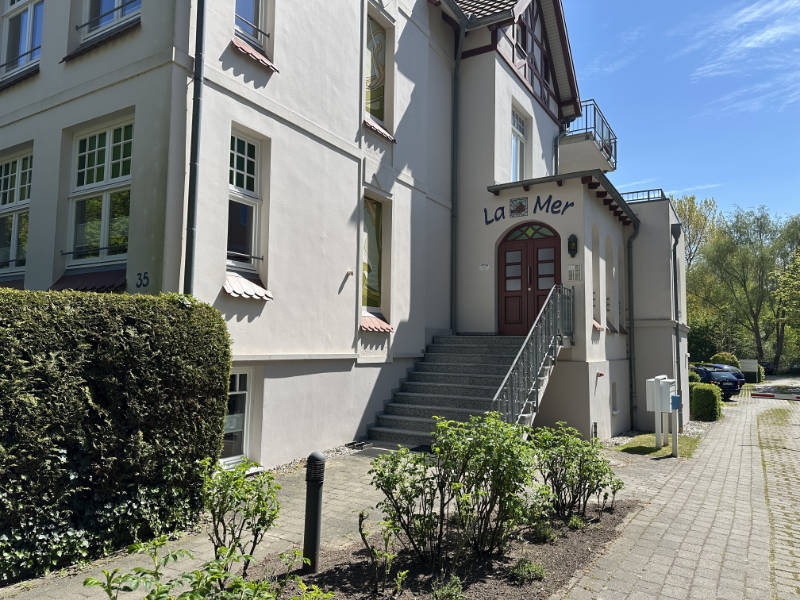 Exklusives Wohnen bietet die Appartementanlage „La Mer“, welche in den 90er Jahren im Stil der Bäderarchitektur mit viel Liebe zum Detail saniert wurde und heute wieder zu den Top-Adressen in Kühlungsborn zählt. Das Haus befindet sich zwischen den beiden Ortsteilen Kühlungsborn-Ost und -West in exponierter Lage direkt gegenüber der Strandpromenade, die mit Ihren vielen Geschäften, Cafè’s und Restaurants zum Verweilen einlädt. Der herrliche Sandstrand ist nur einen Katzensprung entfernt - eine bessere Wohnlage gibt es kaum.