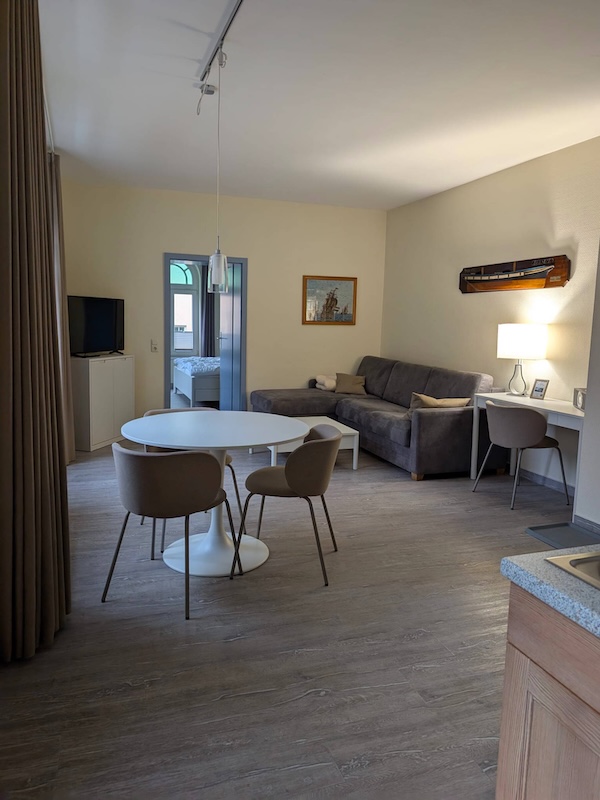 TV, Stereoanlage, DVD-Player, Doppelschlafcouch, Esstisch, 4 Stühle, Vinylboden, kostenfreies Wlan